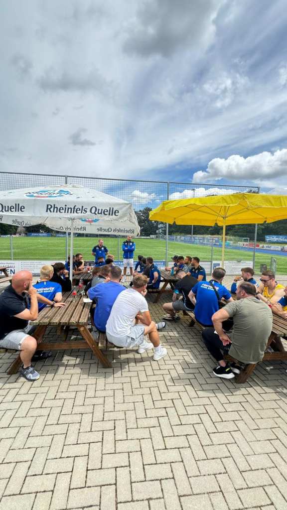 Nach einem gemeinsamen Frühstück und einer anschließenden kurzen Rede durch unseren ersten Vorsitzenden Michael Hilgers, ging es noch in eine Besprechung mit Teammanager Lukas van den Heuvel und Trainer Andreas Semrau. Danach wurden noch alle Bilder und das obligatorische Mannschaftsbild gemacht, ehe es dann endlich auf den Platz ging. Zum Auftakt ging es in eine entspannte 1 1/2 stündige Trainingseinheit, bis es dann ab Montag mit Vollgas weitergeht.