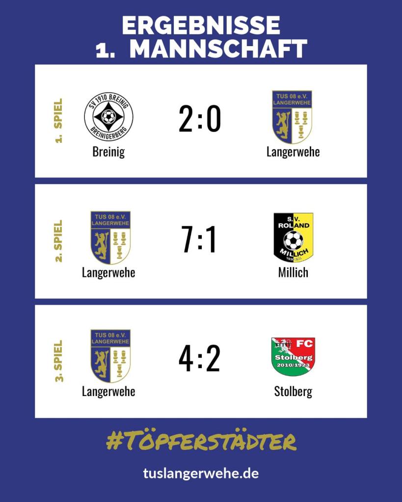 Am vergangen Freitag trat unsere erste Mannschaft zum Turnier der SG Stolberg in der Gruppe B an. Gegner in dieser Gruppe waren SV Breinig und Roland Millich.