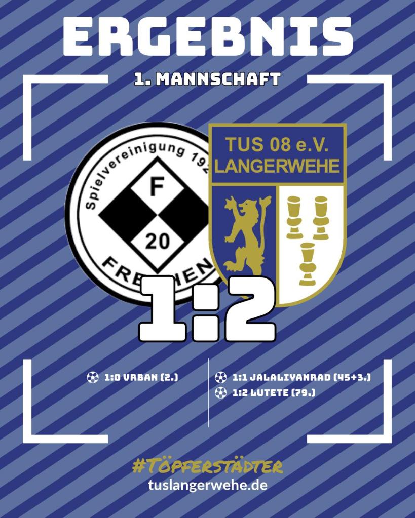 Erste Mannschaft bringt drei Punkte mit aus Frechen. Die Mannschaft um Trainer Talic hatte sichtlich Probleme in das Spiel zu finden. Die ersten 30 Minuten gehörten ganz den Hausherren, so fiel auch bereits in der 2. Minute der Gegentreffer. Ab da fand unsere Mannschaft besser ins Spiel. In einem körperlich betonten Spiel konnte Jalaliyanrad spät in der Nachspielzeit der ersten Hälfte mit einem sehenswerten Treffer aus 25 Metern ausgleichen. In der zweiten Halbzeit war das Spiel klar in der Hand der Langerweher Mannschaft. Frechen schwächte sich selber noch in der 75. Minute durch eine rote Karte. Der Ehrgeiz konnte Mannschaft auch in Unterzahl dennoch nicht abgesprochen werden. In der 79. Minute konnte Beqiri mit einem guten dribbling glänzen und holte so einen Elfmeter raus. Dieser wurde erfolgreich von Lutete verwandelt. Kurz vor Schluss sah Frechen noch ein Gelb-Rote Karte, welche dann auch das Ende des Spiels war. Gute gemacht und stark gekämpft Jungs!