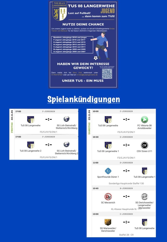 anbei erhaltet ihr wie gewohnt die Spielübersicht unserer Junioren der nächsten Tage. Wir würden uns sehr über eure Unterstützung am Spielfeldrand freuen. 🔵⚪️
