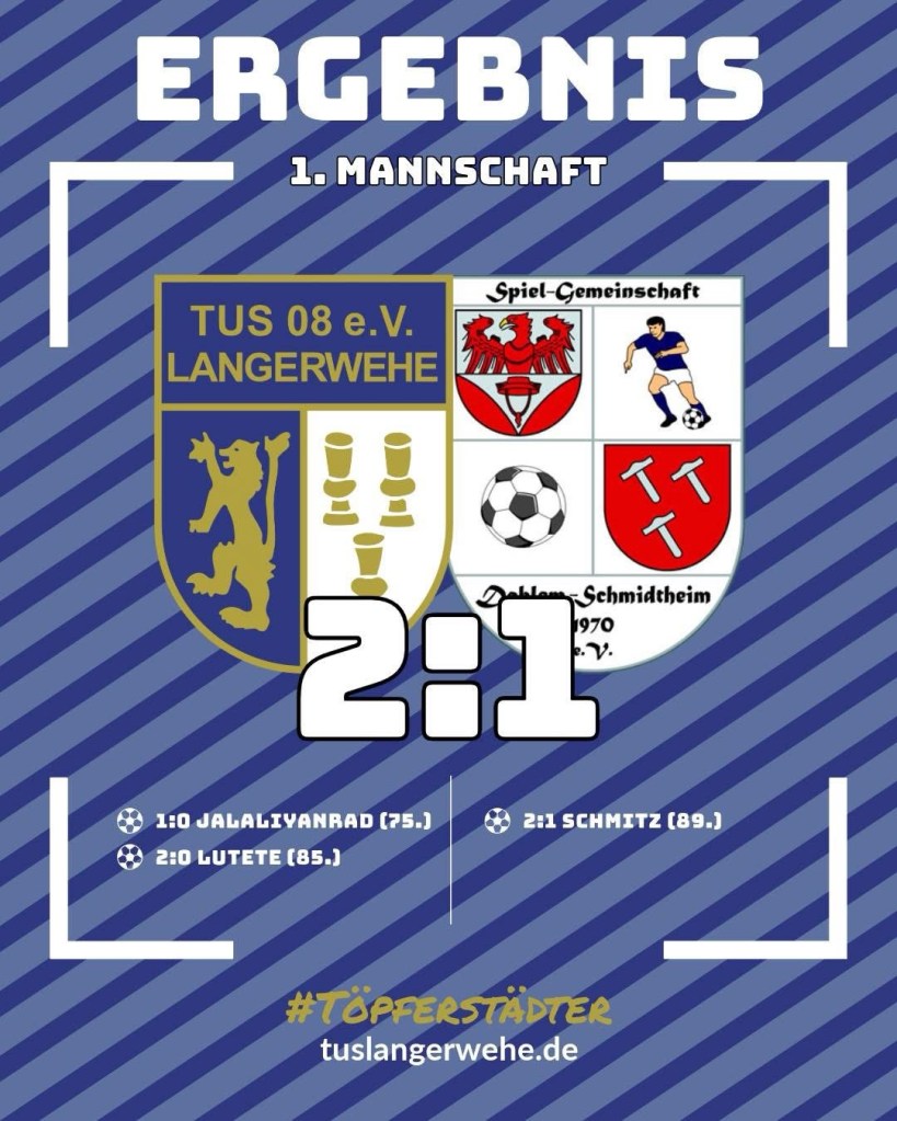 Im Spiel gegen den Tabellenletzten SG Dahlem-Schmidtheim verlor unsere Mannschaft bereits in der 20. Minute einen Spieler. Joel Teichert ging nach einem Foulspiel als letzter Mann frühzeitig in die Kabine. Dies erschwerte das Spiel für unsere Mannschaft natürlich etwas. So dauerte es bis zur 75. Minute, als unsere Mannschaft durch Jalaliyanrad 1:0 in Führung ging. Nur zehn Minuten später konnte Lutete den Stand auf 2:0 erhöhen. Kurz vor Abpfiff gelang den Gästen noch der Anschlusstreffer, somit endete das Spiel mit 2:1. Glückwunsch Männer! 🔵⚪️