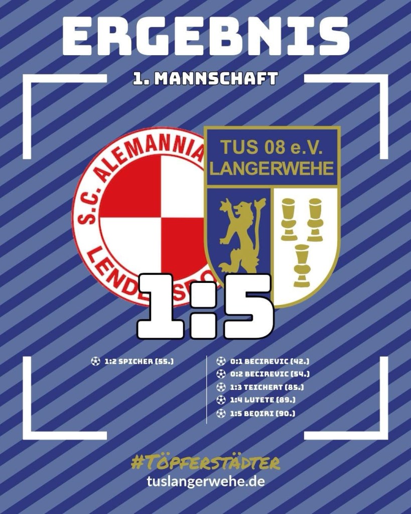 Erste gewinnt letztlich klar mit 5:1 im Derby gegen Alemannia Lendersdorf. Die erste Halbzeit war ein Schlagabtausch mit guten Möglichkeiten auf beiden Seiten. Eine dieser Chancen konnte unsere Mannschaft durch Becirevic (42.) noch vor der Halbzeit verwerten. Zehn Minuten nach Wiederanpfiff konnte erneut Becirevic mit einem sehenswerten Distanzschuss auf 2:0 erhöhen. Die Euphorie wurde aber kurz darauf durch den Anschlusstreffer direkt wieder genommen. Lendersdorf versuchte weiterhin mitzuhalten, musste sich aber nach und nach eingestehen, das Tempo nicht mehr mitgehen zu können. So erhöhte unsere Mannschaft durch Teichert (85.), Lutete (89.) und Beqiri (90.) folgerichtig auf den 5:1 Endstand. Glückwunsch zum Derbysieg!
