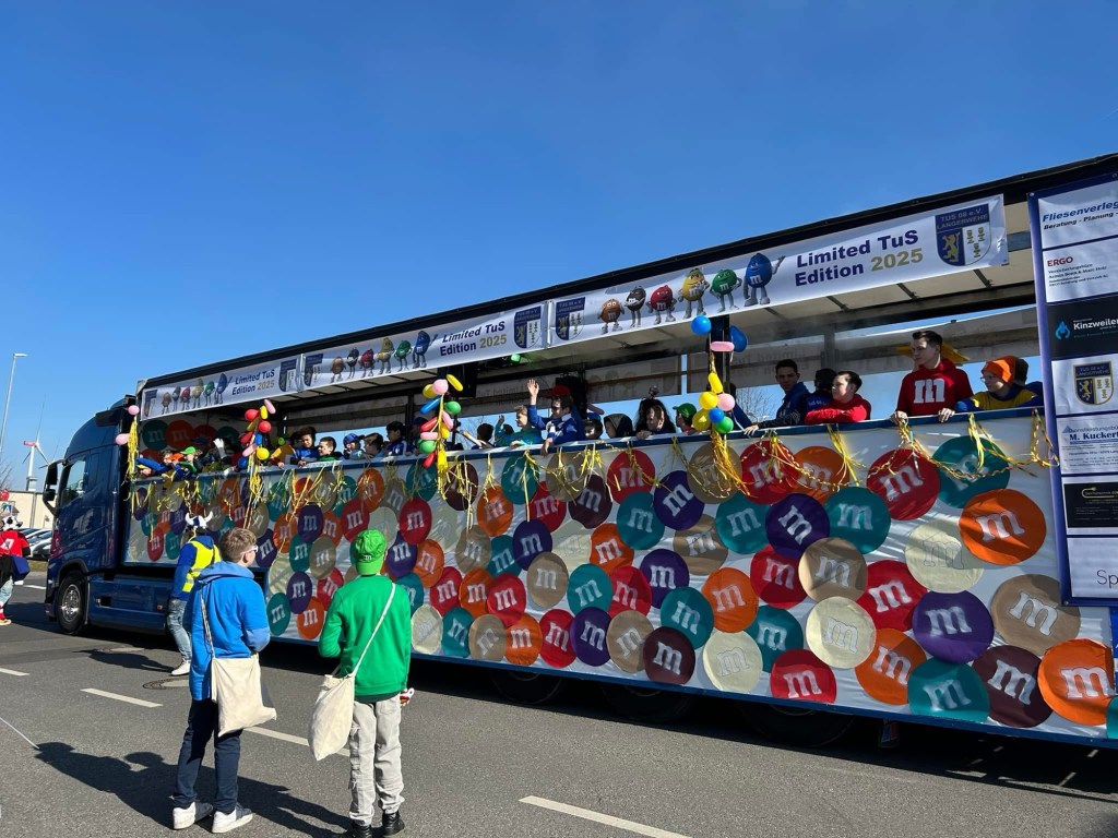 und auch nicht allen anderen Karnevalisten. Am vergangenen Sonntag durfte der TuS 08 Langerwehe bei echtem Kaiserwetter wieder mit einer riesigen Mannschaft am Karnevalszug in Langerwehe teilnehmen. Neben unserer Jugendabteilung mit rund 100 Teilnehmern auf und neben dem Wagen haben ebenfalls die Wehebachjungs und unser „Traditionswagen“ der MUSIKEXPRESS am Umzug teilgenommen. Für unsere Jugendabteilung wurde es in diesem Jahr mit dem Motto „M&M“ ziemlich bunt und wir bedanken uns bei den fleißigen Helfern und Wagenbauern die uns bei der Umsetzung des Mottos in vielen vielen Stunden unterstützt haben. Dieser Einsatz ist nicht selbstverständlich! Ebenso danken wir den Wagenengeln und Trainern für die Begleitung ihrer Schützlinge.