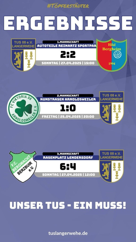 Unsere zweite Mannschaft trifft drei mal und verliert dennoch 1:0. Über 80 Minuten machte unsere Mannschaft das Spiel gegen Arnoldsweiler, erspielte sich Torchancen und traf auch drei Mal. Drei fragwürdige Abseitsentscheidungen sorgten jedoch dafür, dass die Treffer nicht zählten. Letztlich fing man sich dann einen Elfmeter und verlor das Spiel. Kopf hoch Männer – spielbestimmend gewesen. Sollte an diesem Tag einfach nicht sein! 🔵⚪️